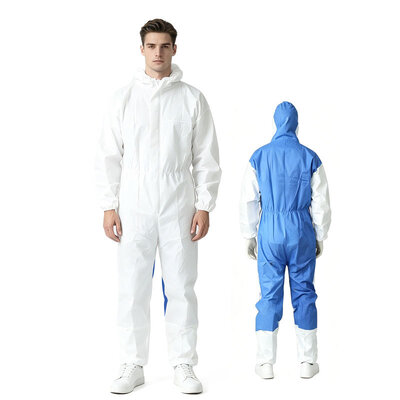 Dit wegwerpoverall van Type 5/6 combineert SF microporeus film-gelamineerd materiaal (voorkant & mouwen) met een ademend SMS non-woven rugpaneel. De hybride constructie biedt gerichte bescherming waar het blootstellingsrisico het hoogst is, terwijl de warmtebelasting wordt verminderd door verbeterde ventilatie aan de achterkant. Gecertificeerd volgens CE Categorie III onder EU-verordening (EU) 2016/425, is dit overall geschikt voor omgevingen met droge deeltjes en lichte vloeistofspatten.