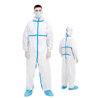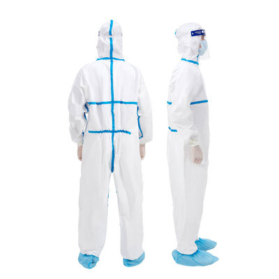 | Stil | Kapuzenschutzanzug mit Frontreißverschluss, elastischen Handgelenken, Knöcheln und Kapuze |