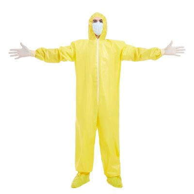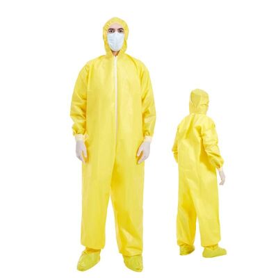 Style | One-piece design coverall with hood, shoe covers, zipper at front opening covered by flap, elasticated cuffs, ankles,hood and waist. |